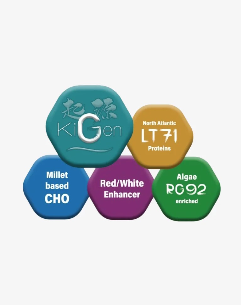 De basis van dit voer ligt in het bewezen succes van KiGen Kinsai: een uitgebalanceerde samenstelling met hoogwaardig LT-vismeel, essentiële voedingsstoffen en een zorgvuldig geselecteerde premix.